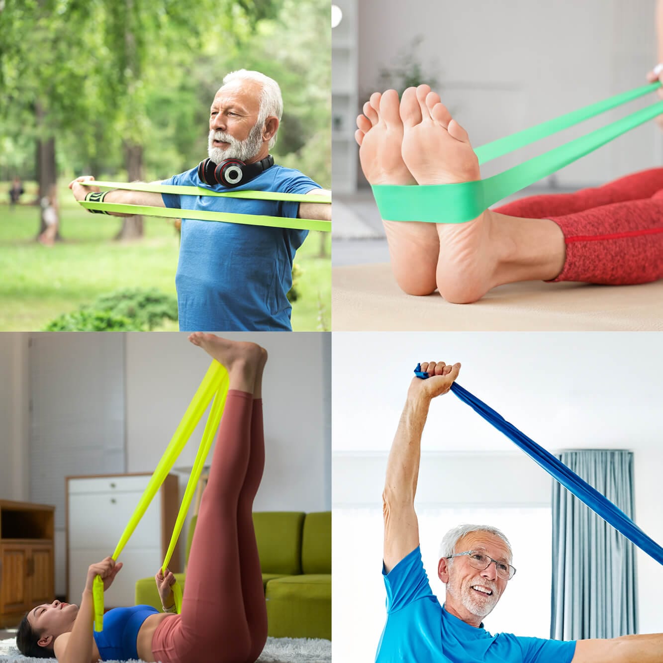 Deze fitness weerstandsbanden set bevat drie verschillende weerstandsbanden, een handleiding en een opbergdoosje. Elke band heeft zijn eigen weerstandsniveau: van licht tot zwaar. Het niveau wordt aangegeven met stippen op de banden en door de kleur. De handleiding bevat oefeningen beschreven in eenvoudige stappen.